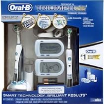 Introducing Oral B's most technologically advanced toothbrush - Triumph with Smart Guide. It is clinically proven to provide extraordinary cleaning and improve brushing habits for healthier teeth and gums. Achieve noticeably cleaner teeth and healthier gums by your next dental check-up! Oral B's revolutionary wireless SmartGuide display is designed to provide while-you-brush feedback to help you use the same techniques recommended by Oral-B experts. Smart Technology allows the handle to communicate with the SmartGuide display and guides you through the dental recommended 2-minute brushing period. Oral-B's patented FlossAction brush heads with micropulse bristles sweep away plaque to provide a floss-like Clean. Oral-B Triumph removes up to 97% of plaque from hard-to-reach areas and improves gum health to help reverse gingivitis. In fact, Oral-B Triumph is clinically proven to improve gum health better than Sonicare FlexCare. Use the Oral-B Triumph with SmartGuide toothbrush twice daily to:Remove up to 97% of plaque from hard-to-reach areas. Remove up to two times more plaque than a regular manual toothbrush. Naturally whiten teeth in 21 days by removing surface stains like coffee, tea, and red wine. Improve gum health and reversing gingivitis. 2-7ear Manufacturer Limited Warranty.